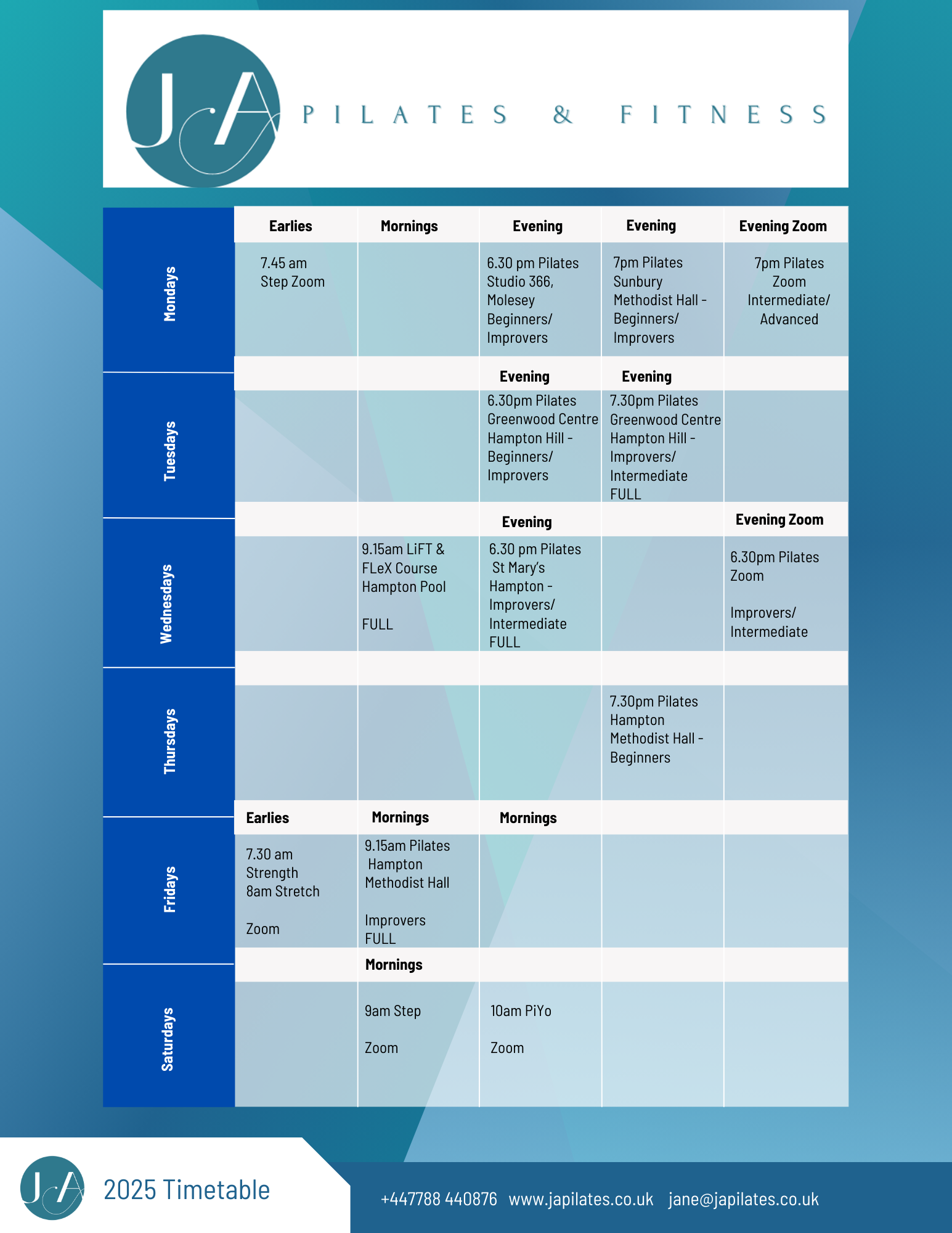 We offer online Pilates and fitness classes via Zoom and in-person Pilates and fitness classes in Hampton, Hampton Hill, Molesey and Sunbury.